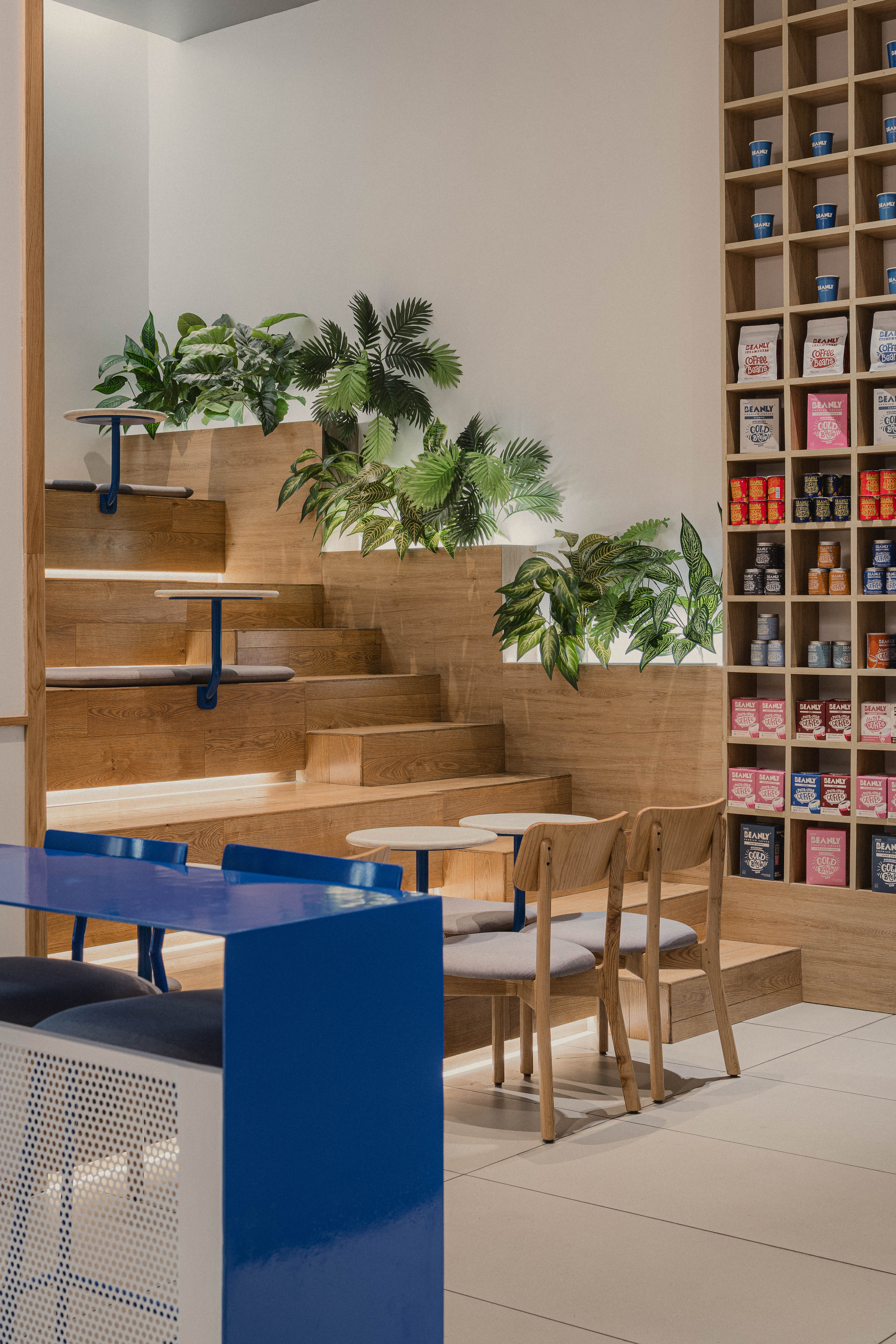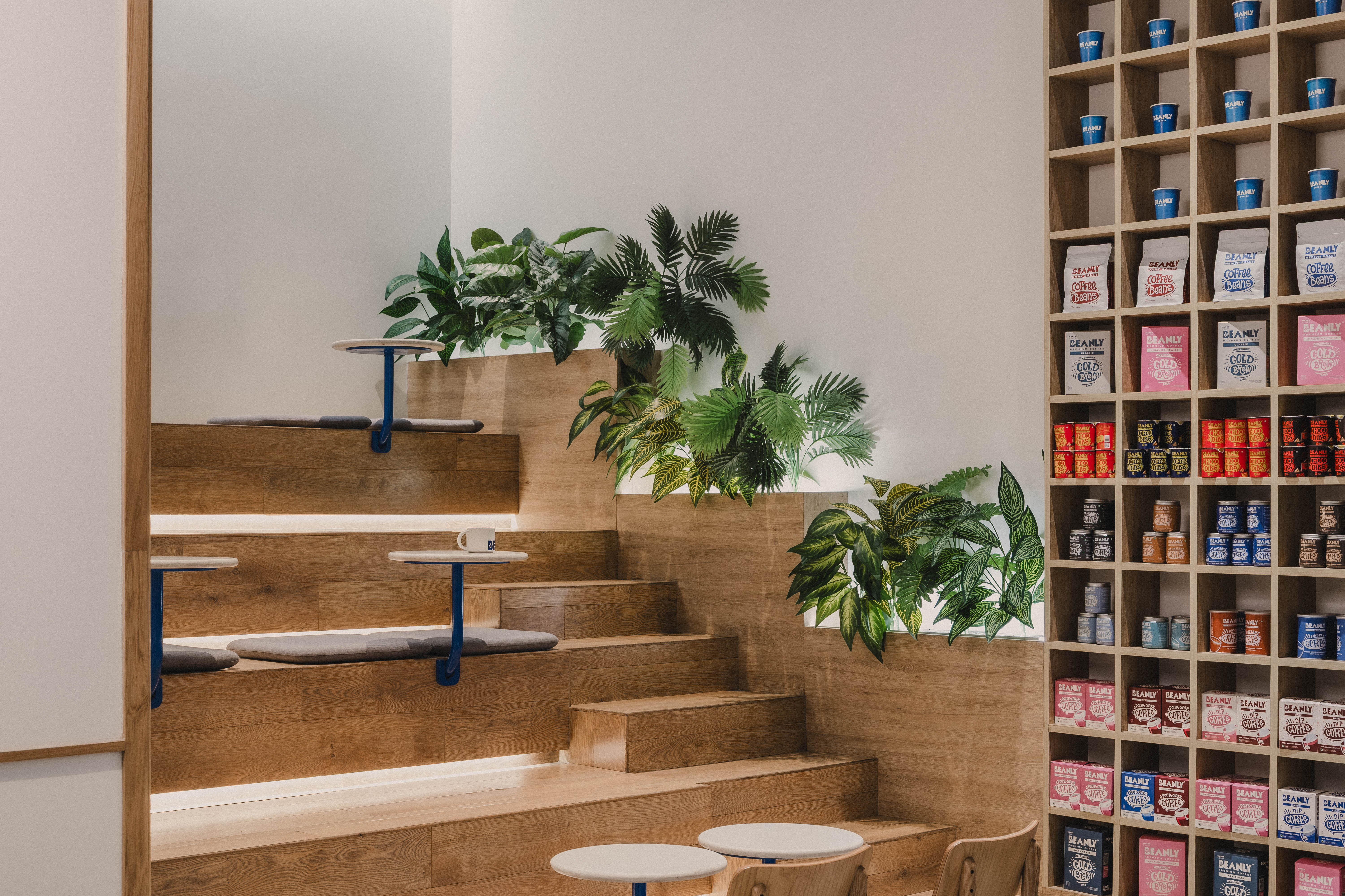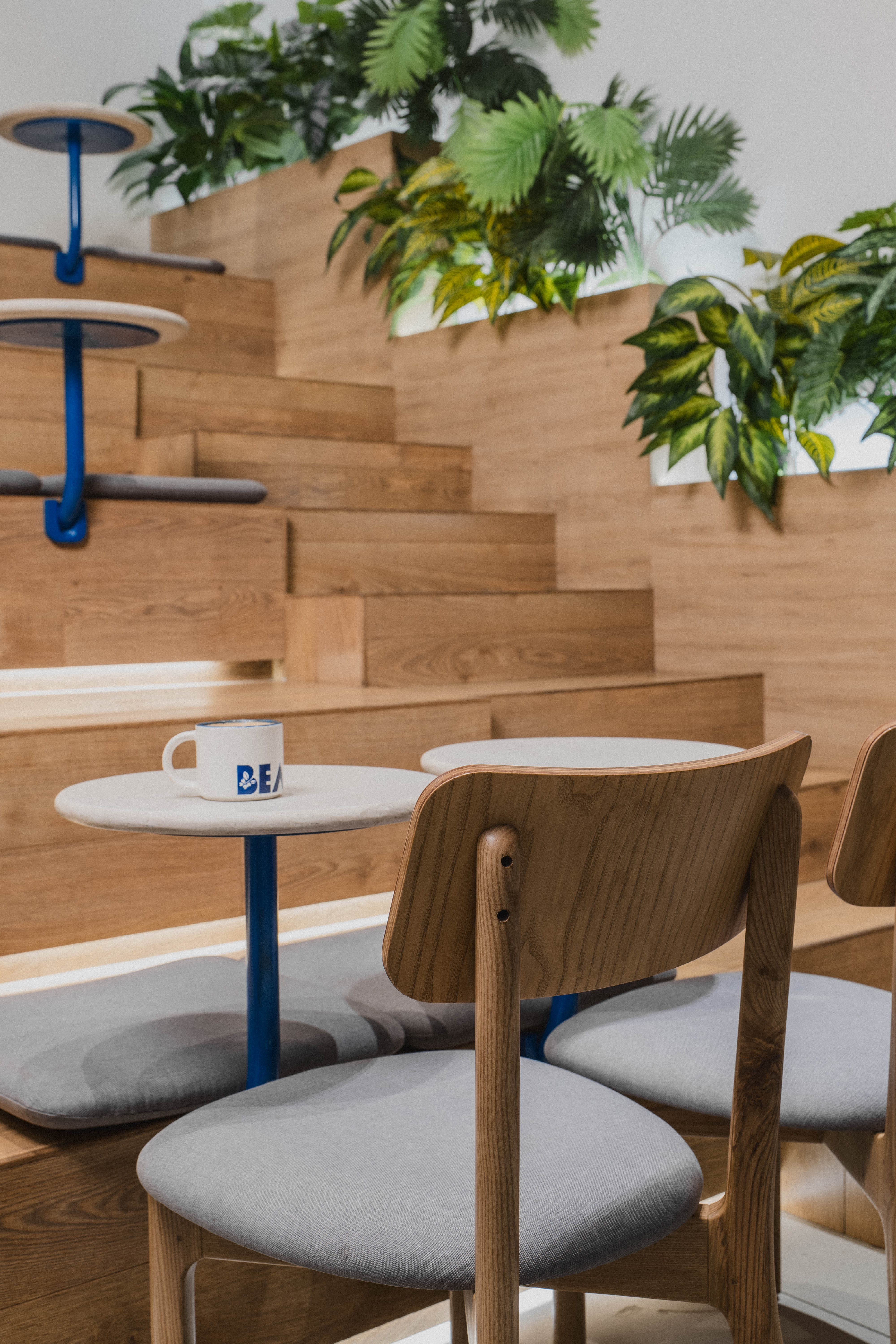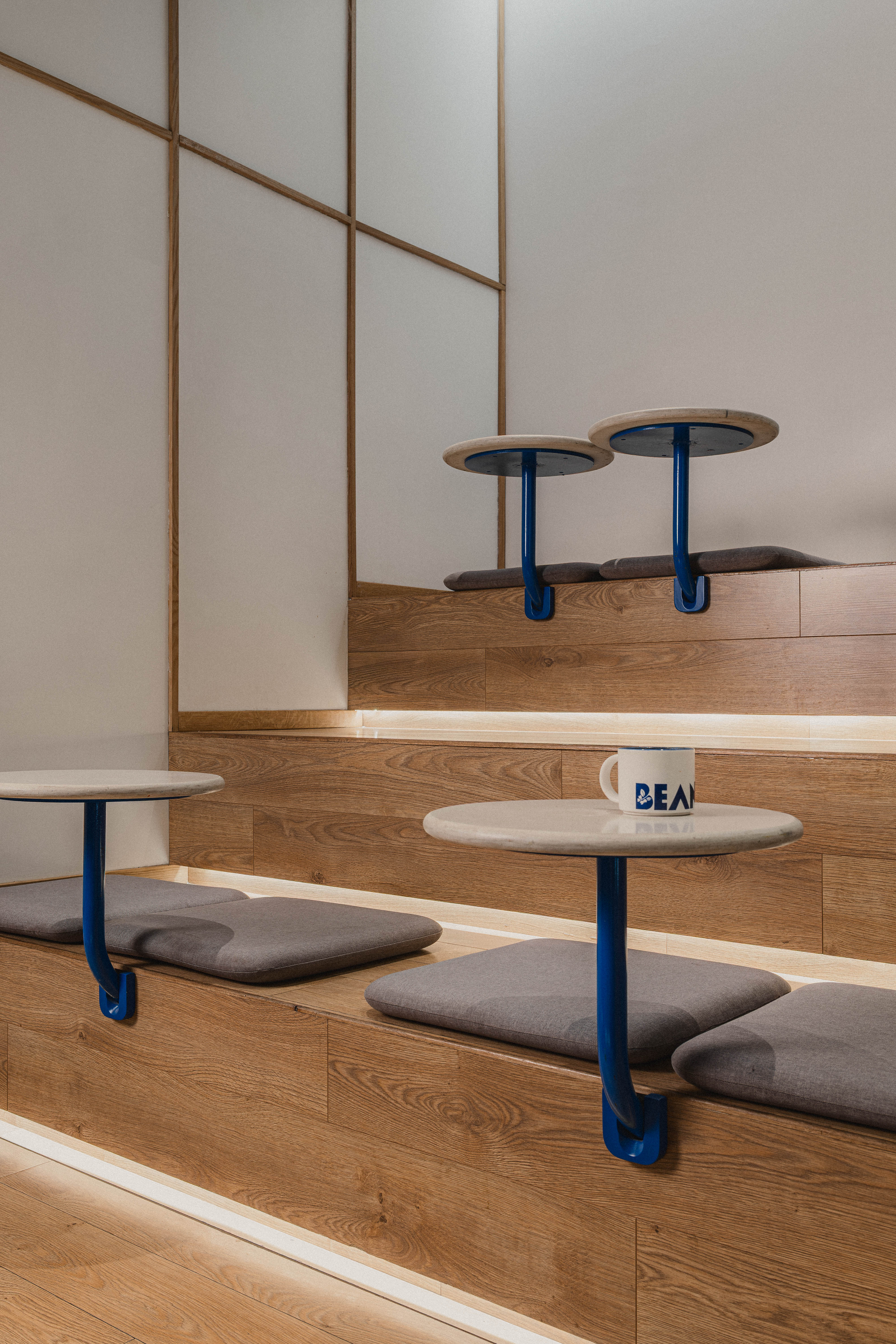 Beanly Café reflects what collaboration can achieve — a space that feels crafted, grounded, and distinctly personal. The stepped seating, originally envisioned by Stand Design, was developed further with layered detailing and thoughtful functionality to create a sense of depth and movement within the layout. Planters soften the structure, adding warmth to the clean geometry, while fixed tables make the setup effortless and easy to maintain, balancing design with practicality.