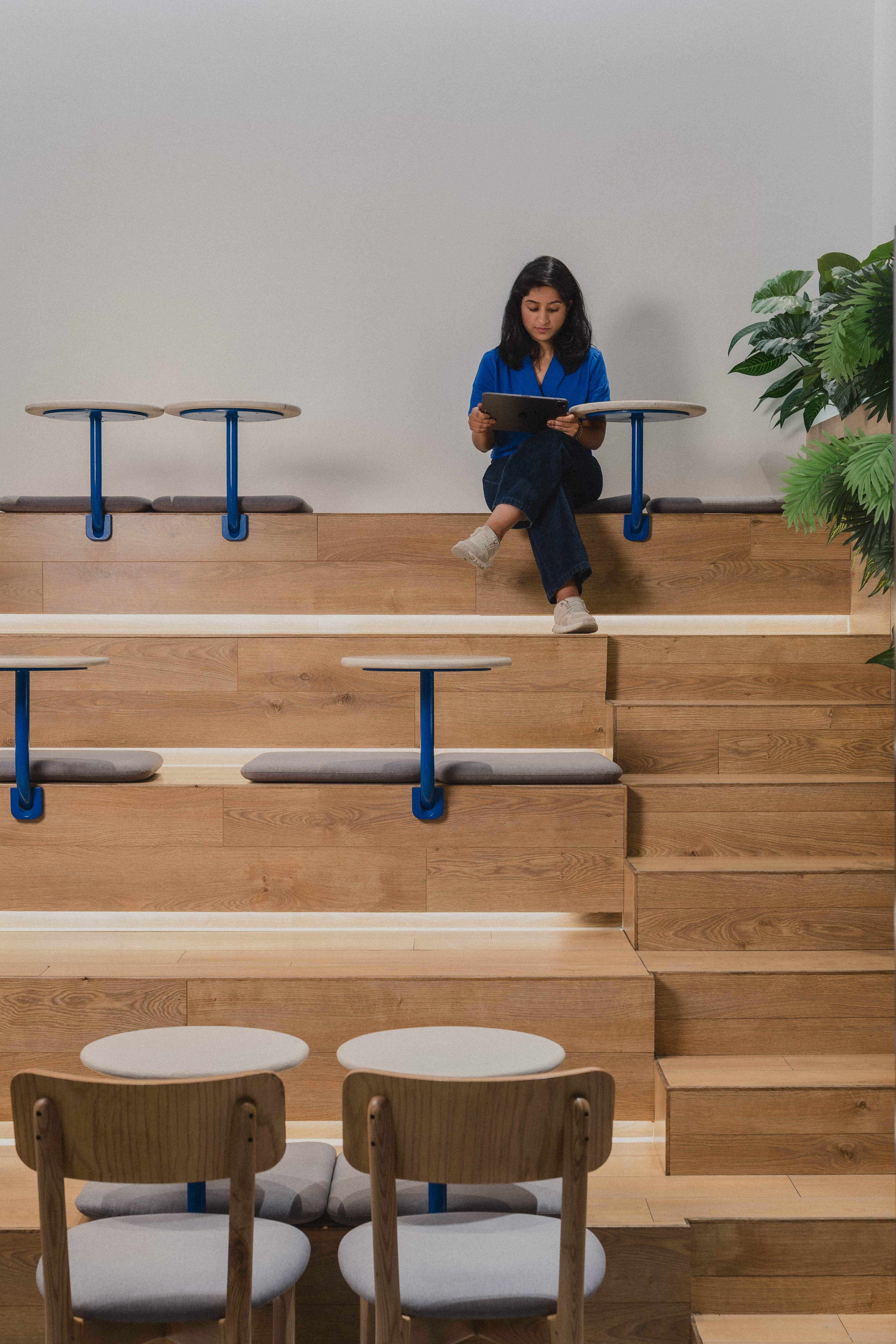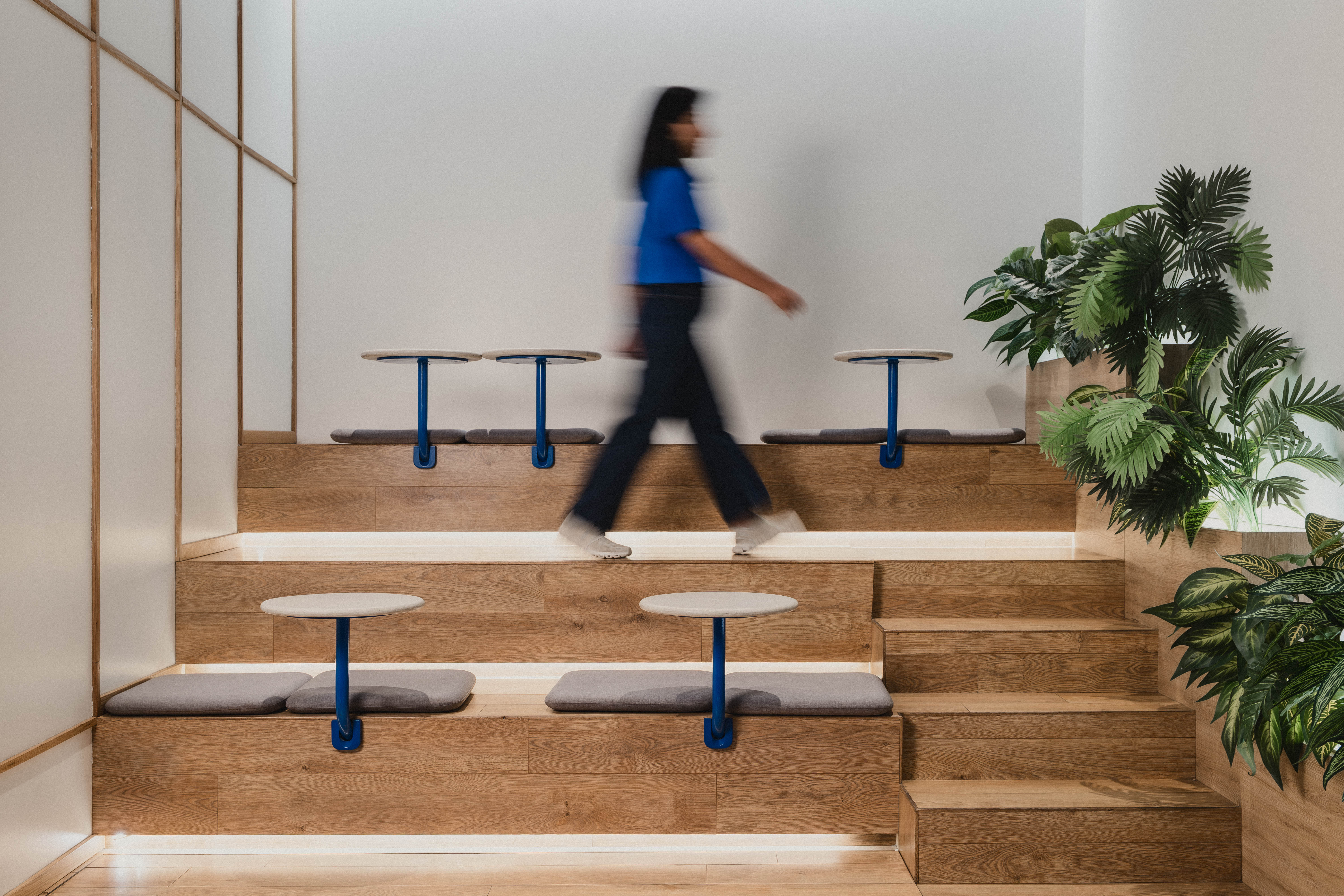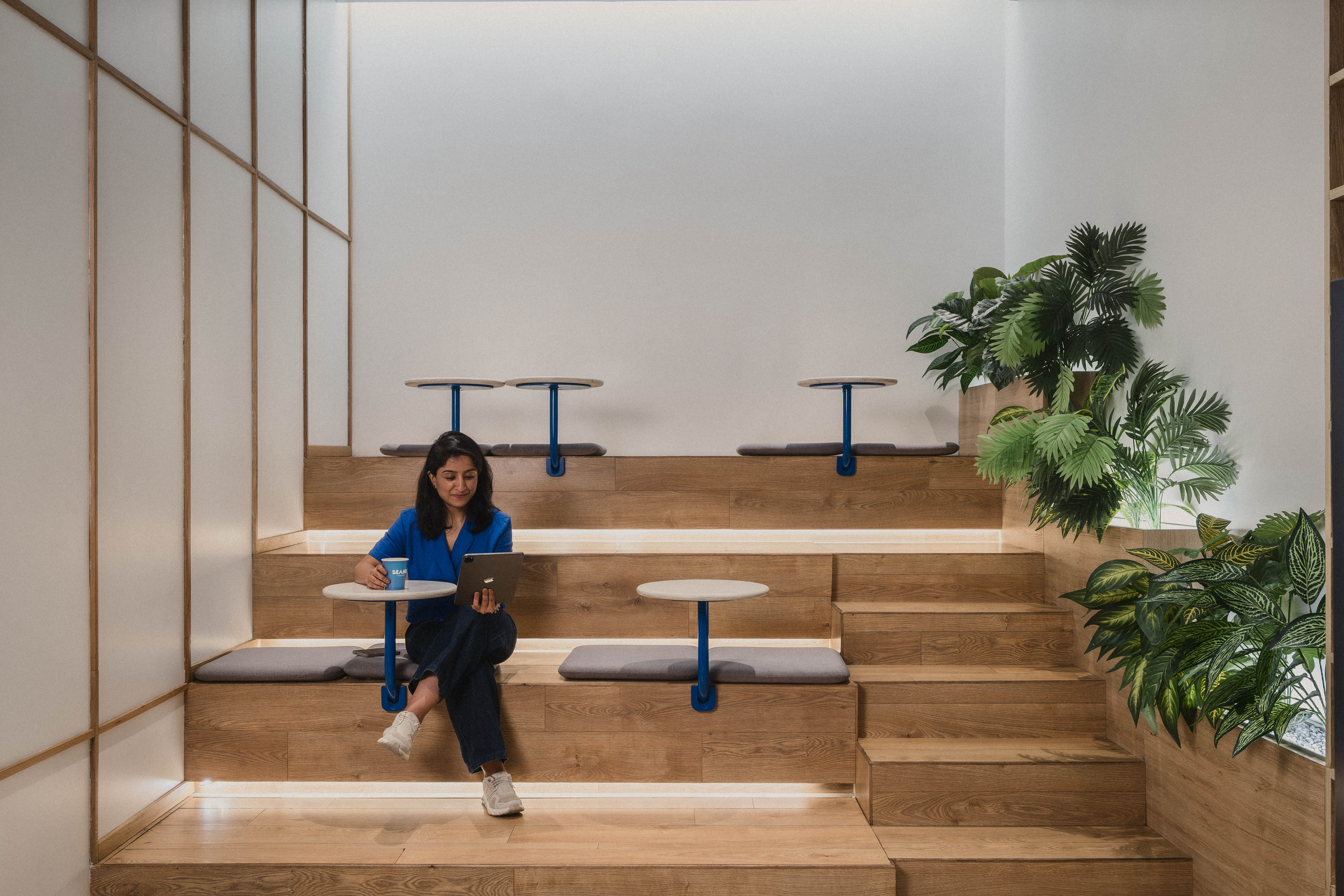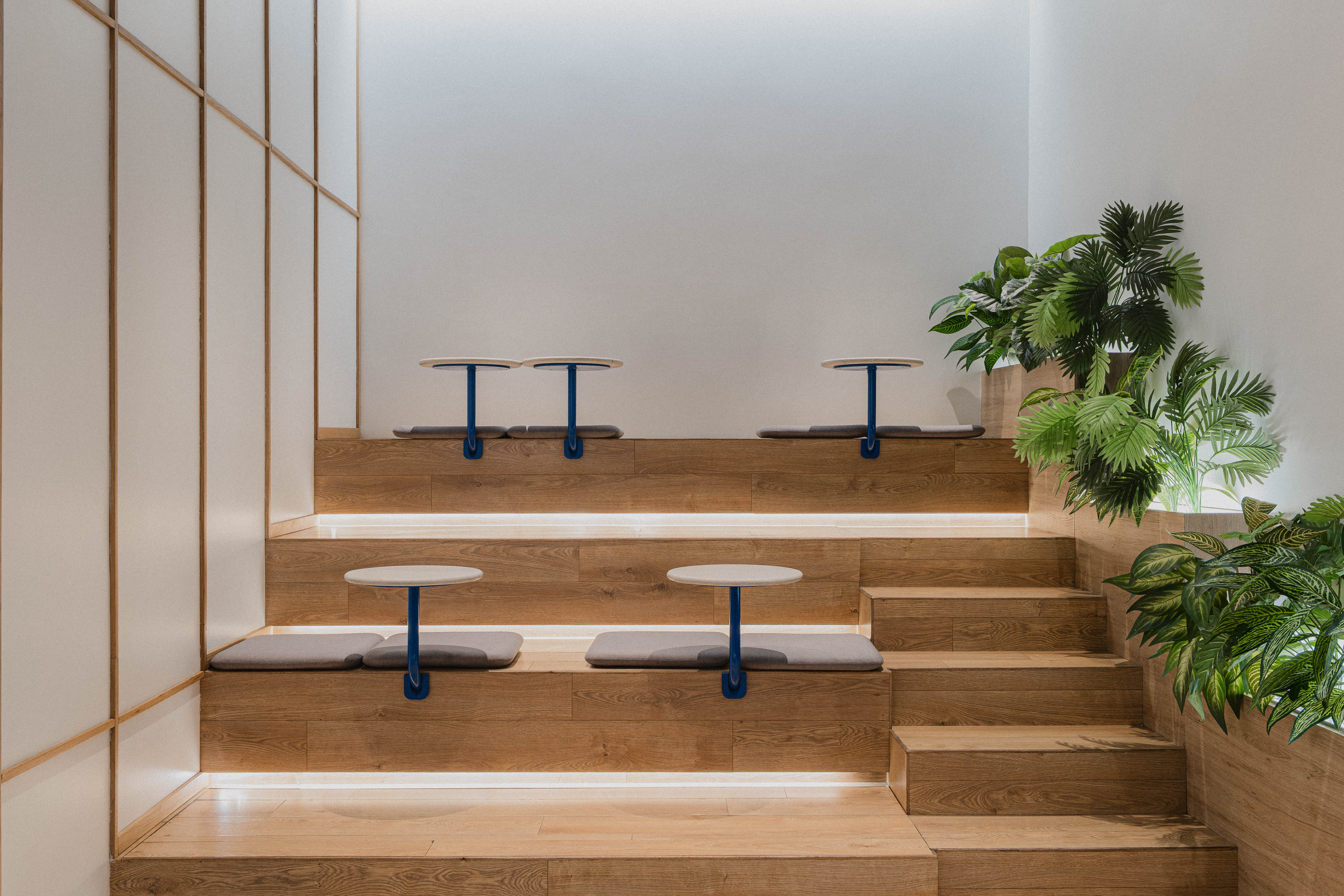 Beanly Café reflects what collaboration can achieve — a space that feels crafted, grounded, and distinctly personal. The stepped seating, originally envisioned by Stand Design, was developed further with layered detailing and thoughtful functionality to create a sense of depth and movement within the layout. Planters soften the structure, adding warmth to the clean geometry, while fixed tables make the setup effortless and easy to maintain, balancing design with practicality.