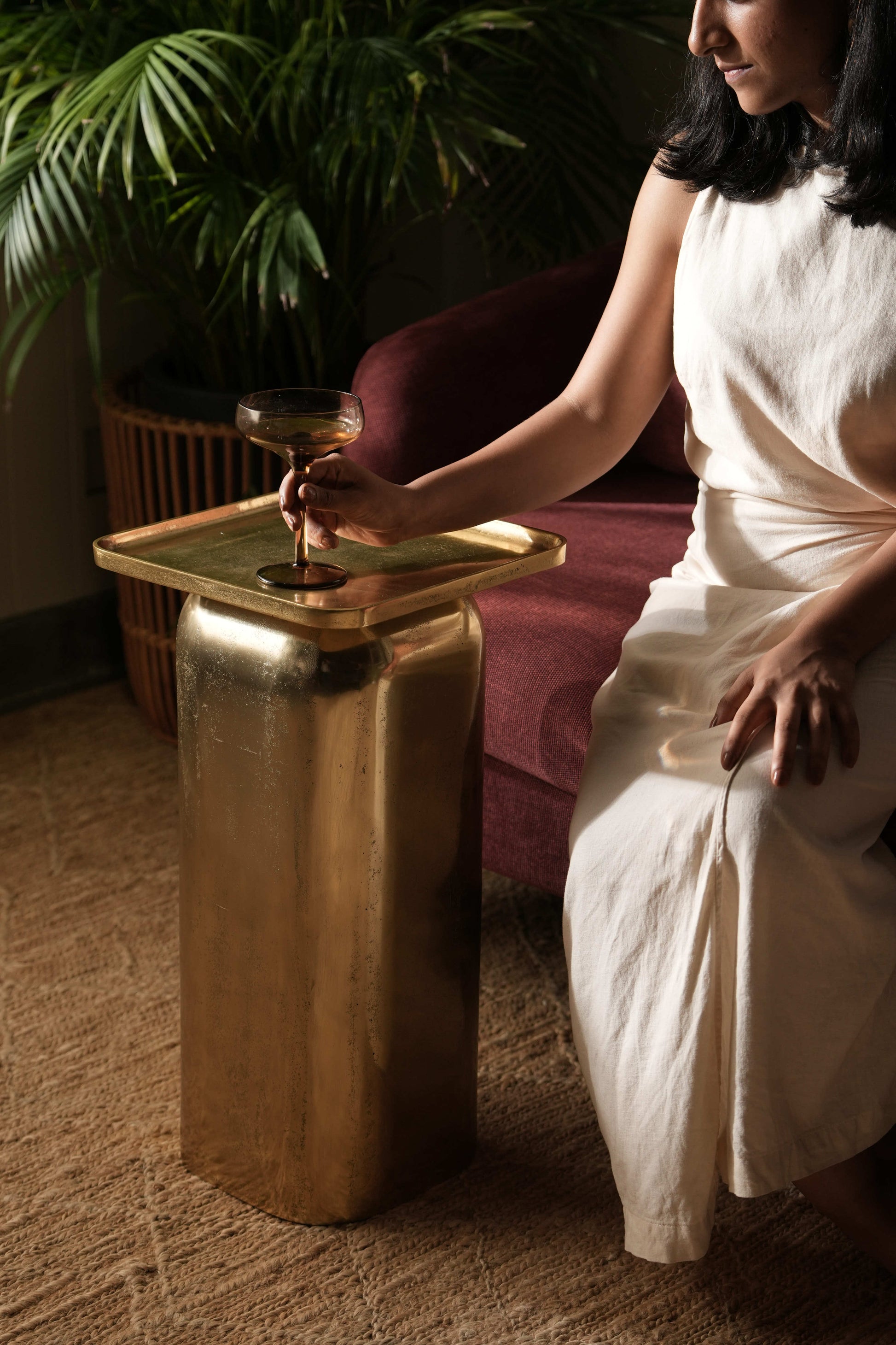 Sleek and sculptural, the Mono Block Table is crafted entirely from aluminium and finished in a soft, brushed gold tone. Its bold, block-like shape gives it a grounded presence. Designed to work as a side table or accent piece, its perfect for contemporary or minimal spaces